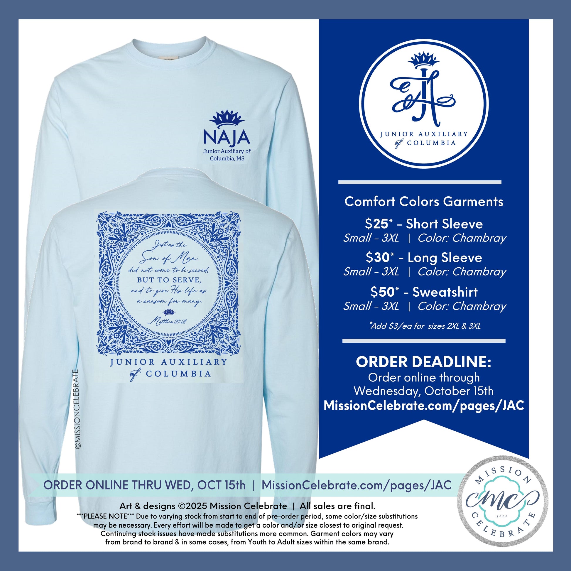 Comfort Colors Long Sleeve Tee for Junior Auxiliary of Columbia (JAC) - CAME TO SERVE SCRIPTURE ART