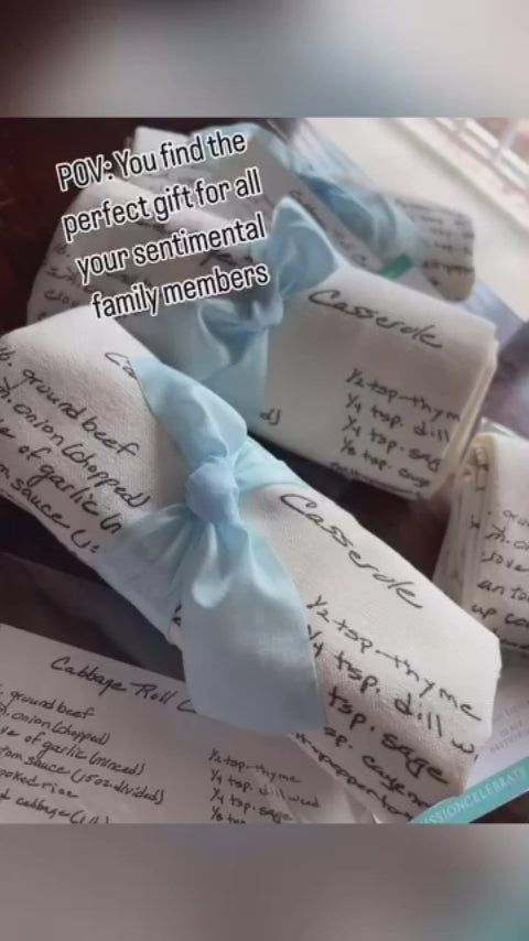 Leslie can even create a tea towel design made from a beloved handwritten recipe card or a piece of child’s artwork. Really, the options are endless. Just ask!