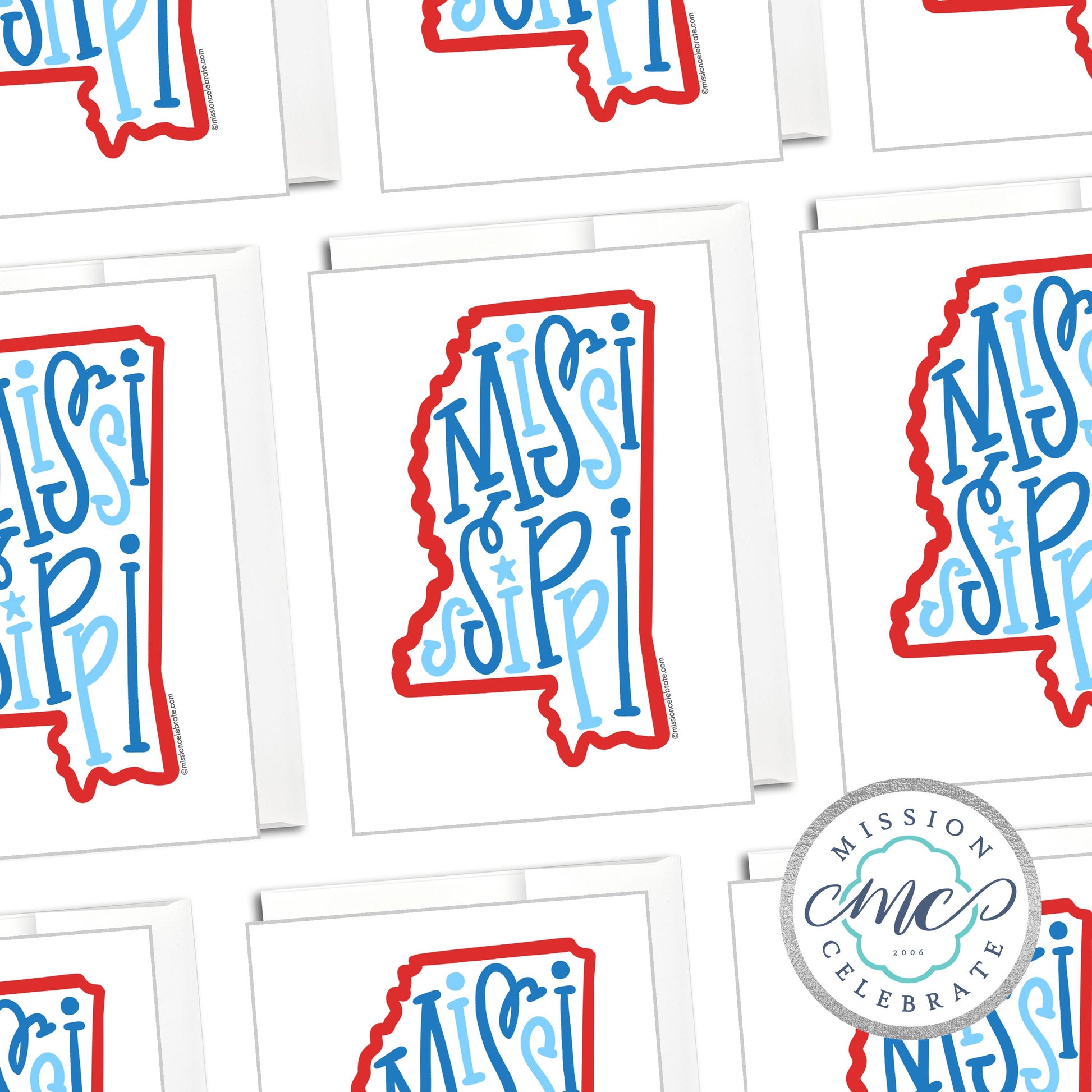 Mississippi Bouncy Letters Handlettered Original Art Greeting Cards (red & blues) (A7 Size 5"x7" folded note note card with envelope)